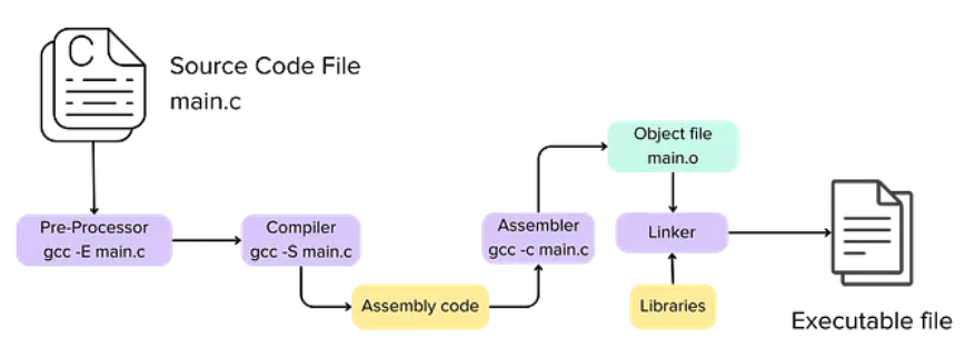 Linking: The final stage where the linker combines various object files and external libraries into a single, self-contained executable.